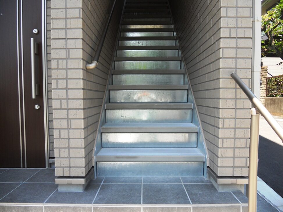 ササラと踏板の平鋼鈑を溶融亜鉛メッキすることで、高い防錆能力としています。